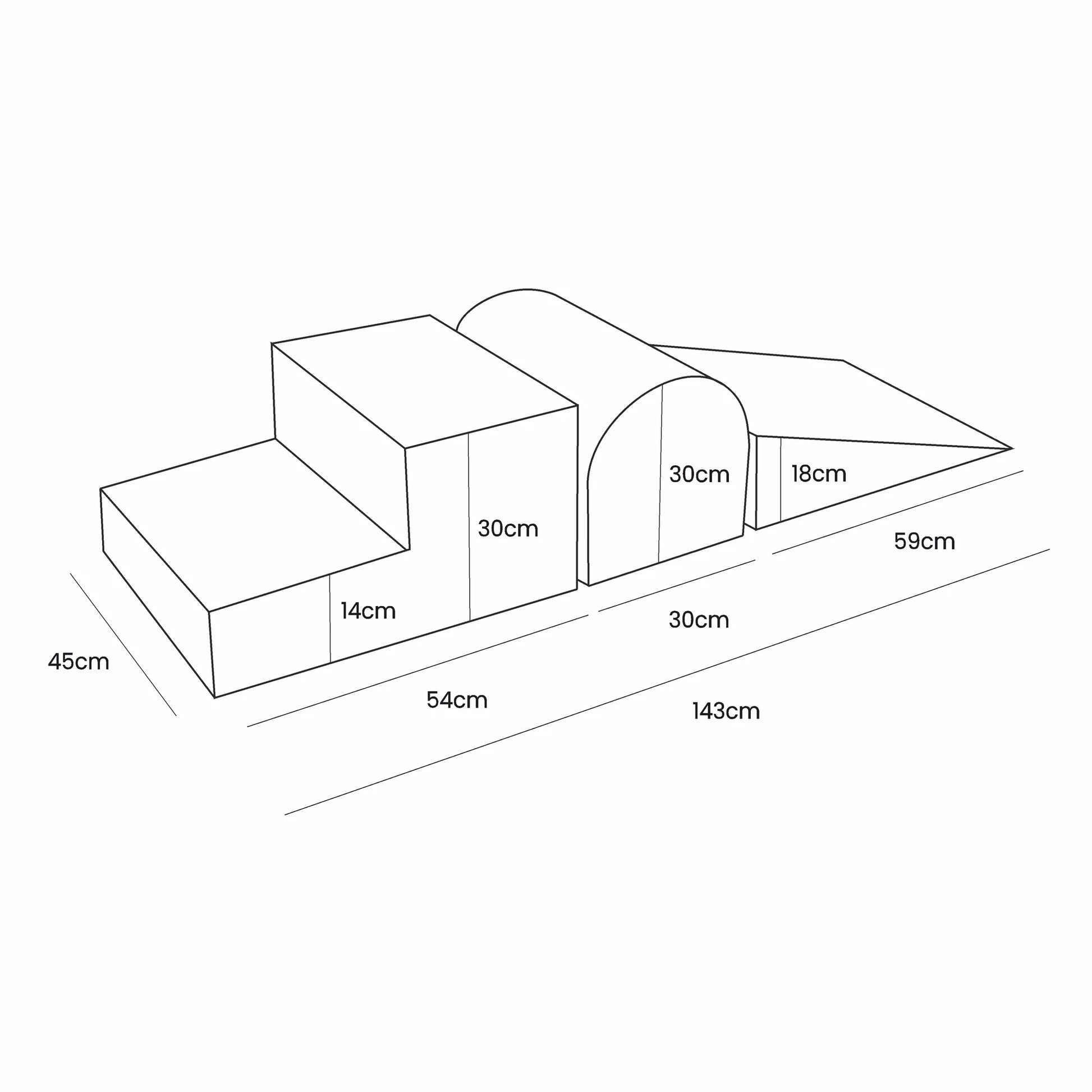 Jetzt können Sie einen Spielplatz in Ihrem eigenen Zuhause schaffen. Unsere Spielbausteine regen nicht nur die kindliche Fantasie an, sondern fördern auch kreatives Denken. Das Modulsystem kann zum Spielen sowie zum Trainieren, zum Erstellen von Hindernisparcours oder räumlichen Konstruktionen verwendet werden. Die einzelnen Elemente können als Poufs oder Sitzgelegenheiten dienen.